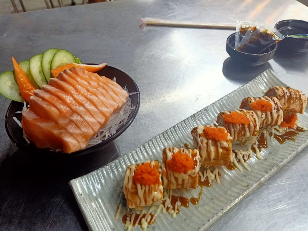 サーモン炙りロールも95THB。エアコン聞いてる寿司屋だとこれも150THBくらいする。